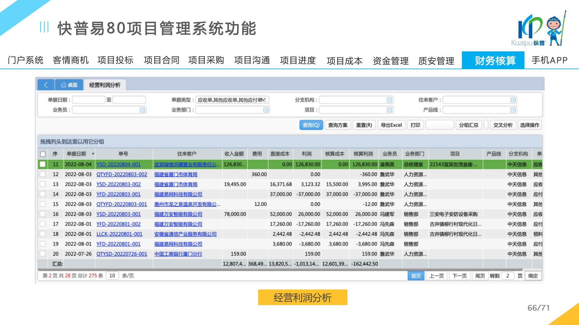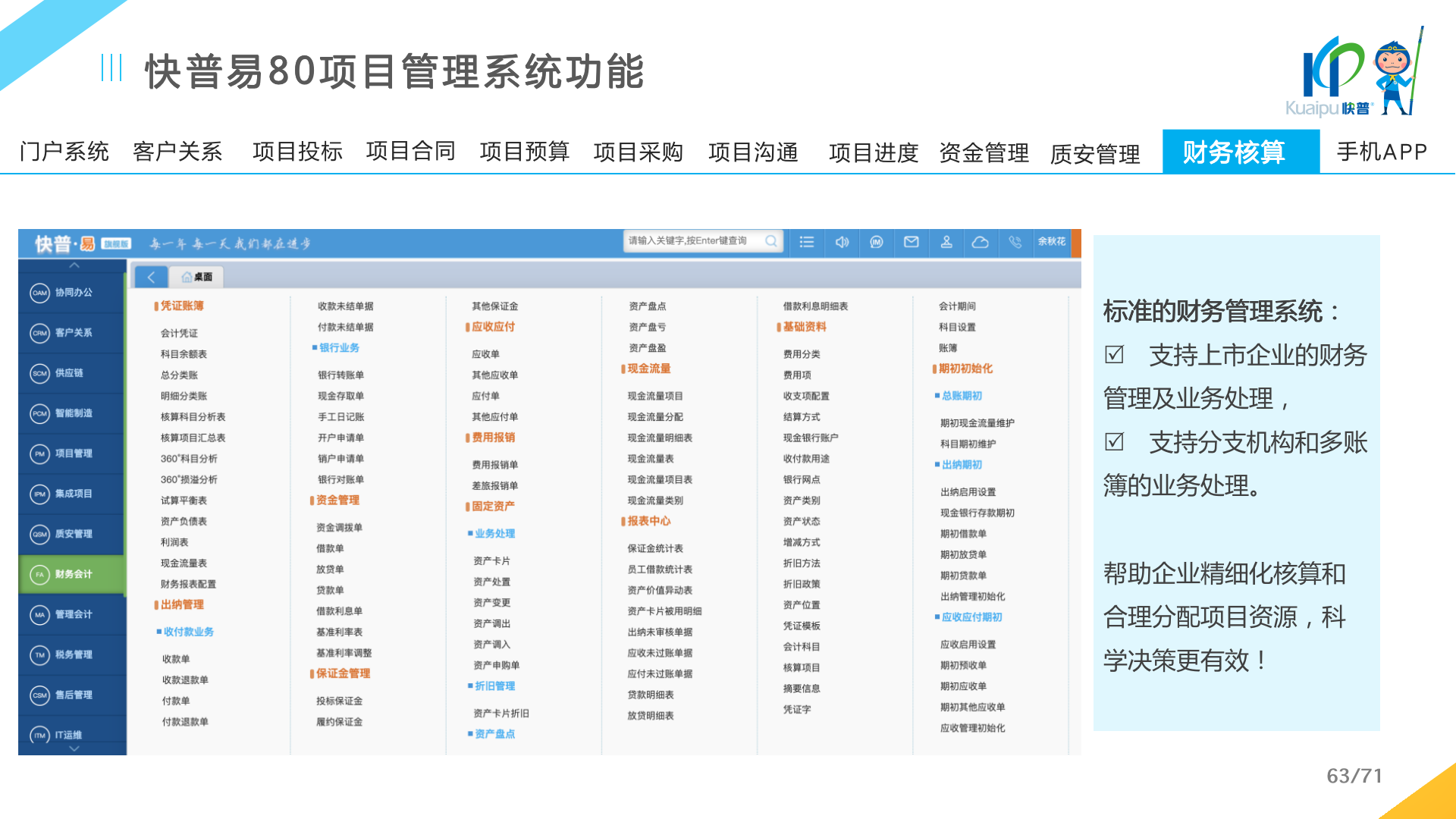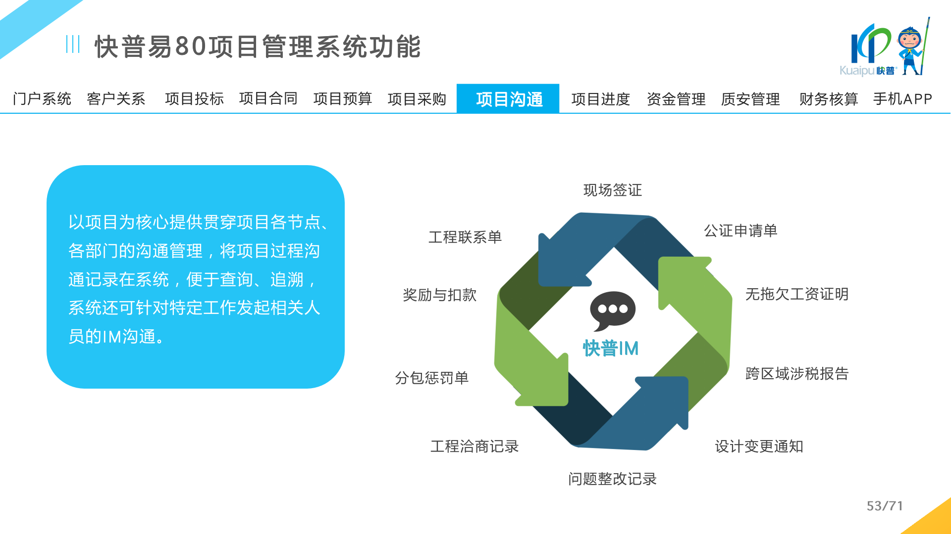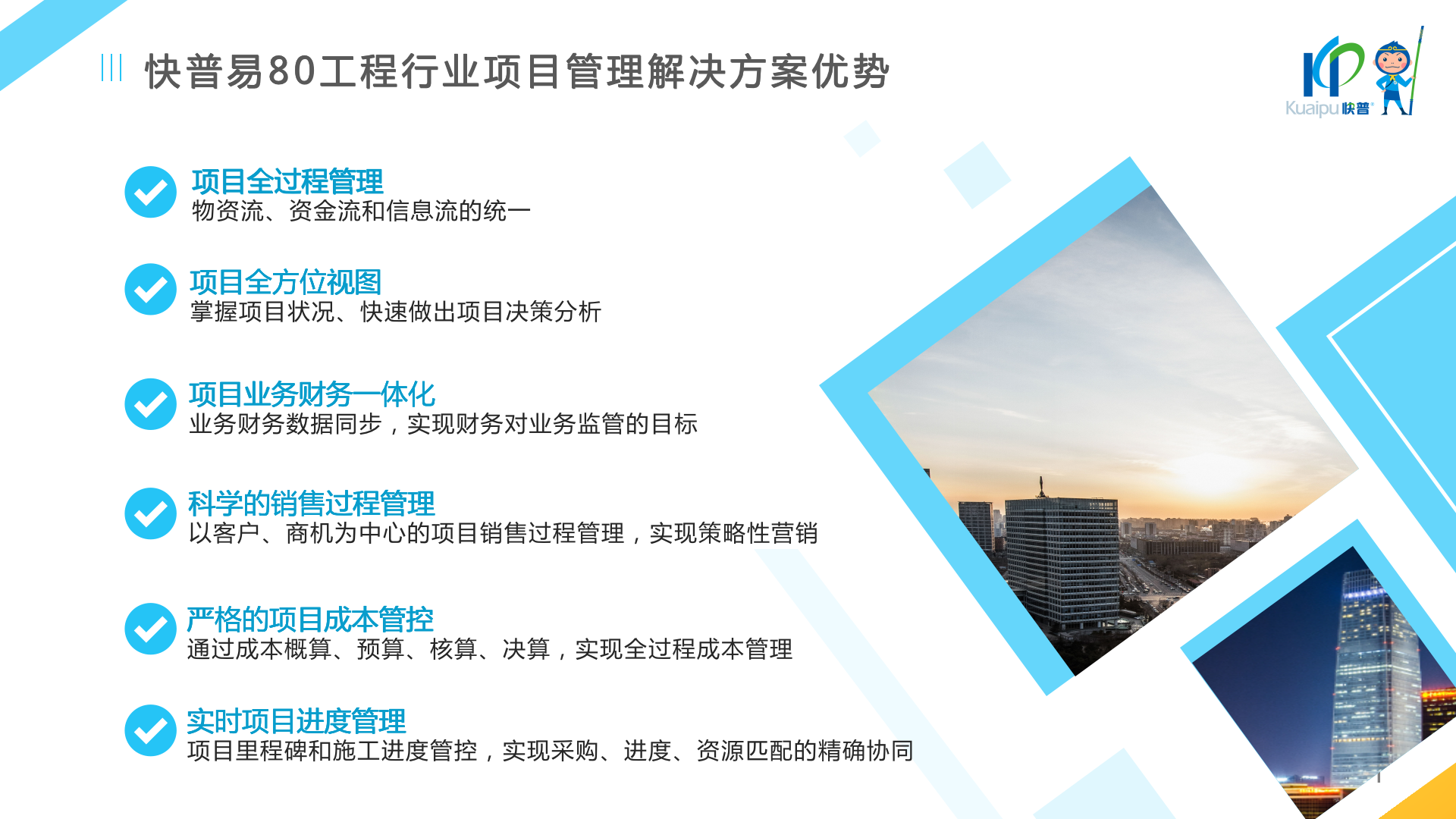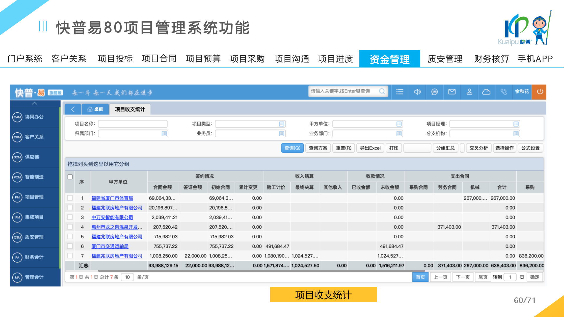 快普易80以項目管理為核心,通過“四控、四管、一協(xié)調”方式,對項目進度、成本、資金、質量安全進行全面控制,實現(xiàn)投標管理、合同管理、物資管理、預算管理等項目全生命周期項目的數(shù)字化管理,實現(xiàn)資源合理配置、保障良好的項目效益。