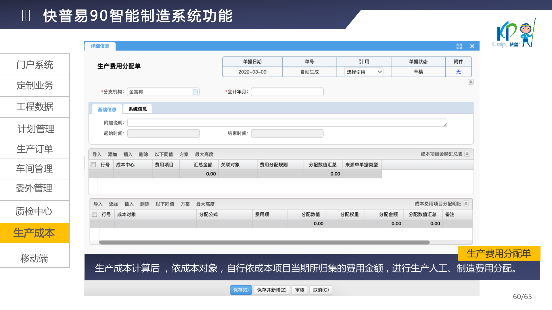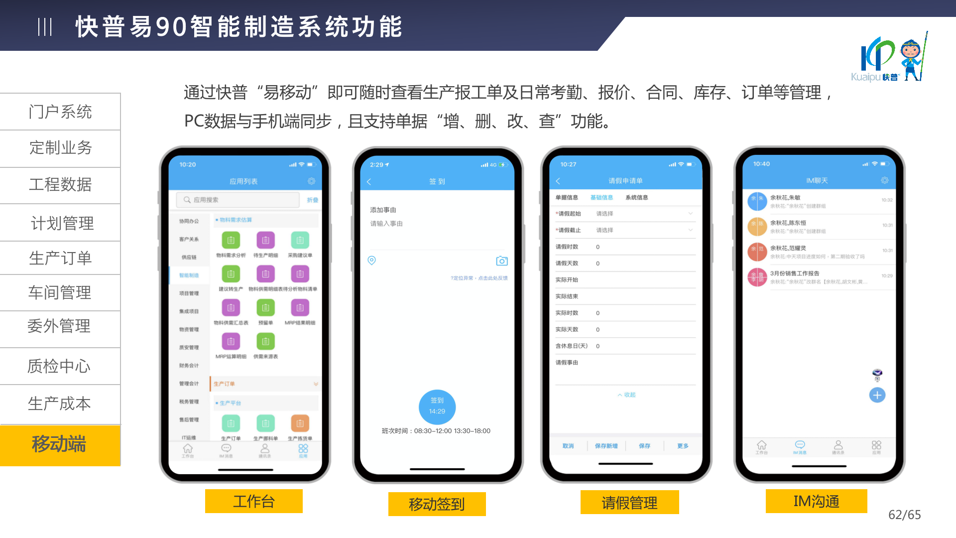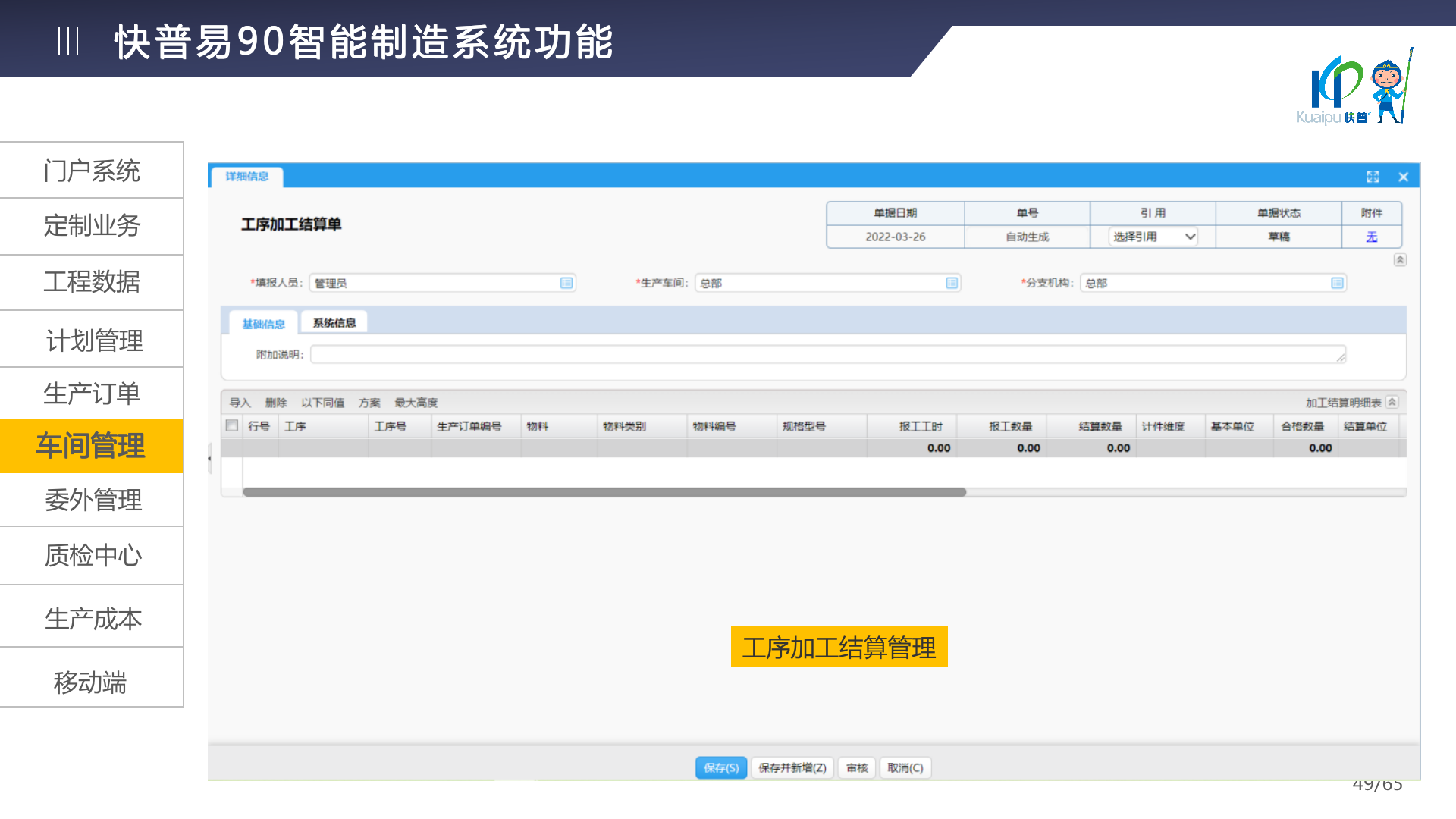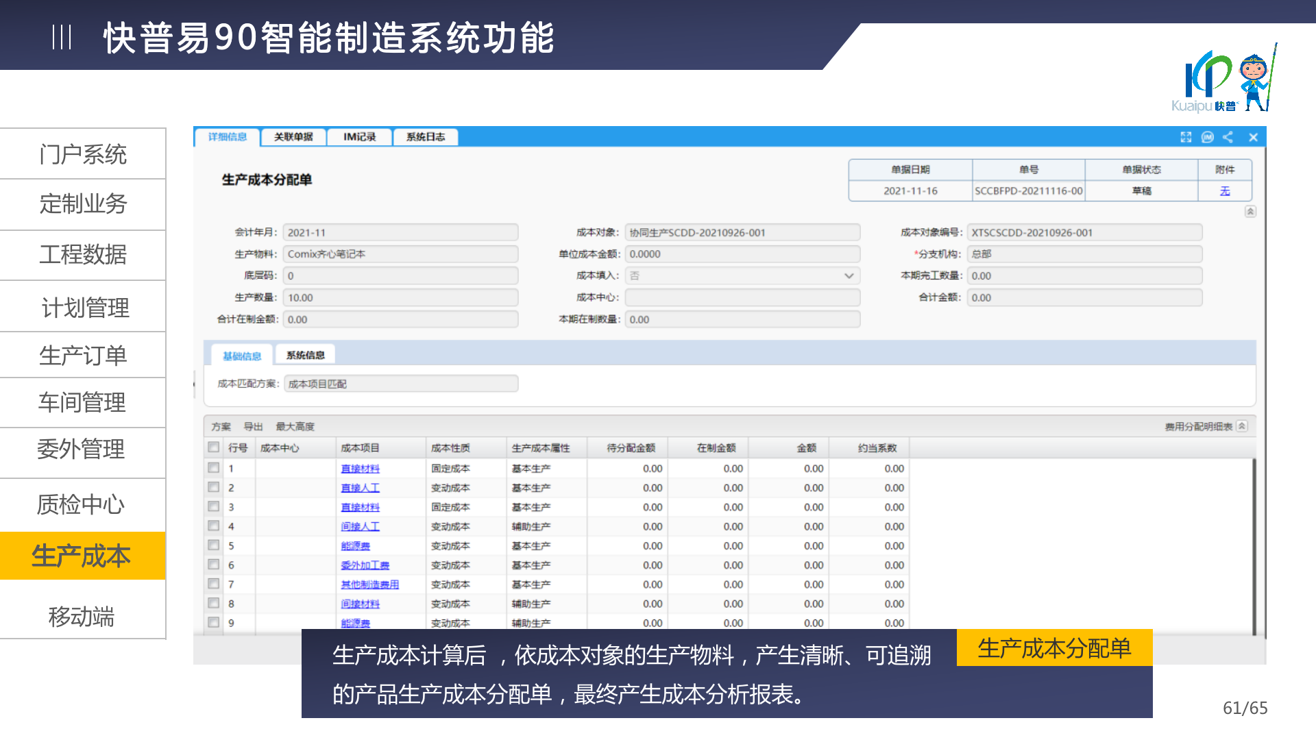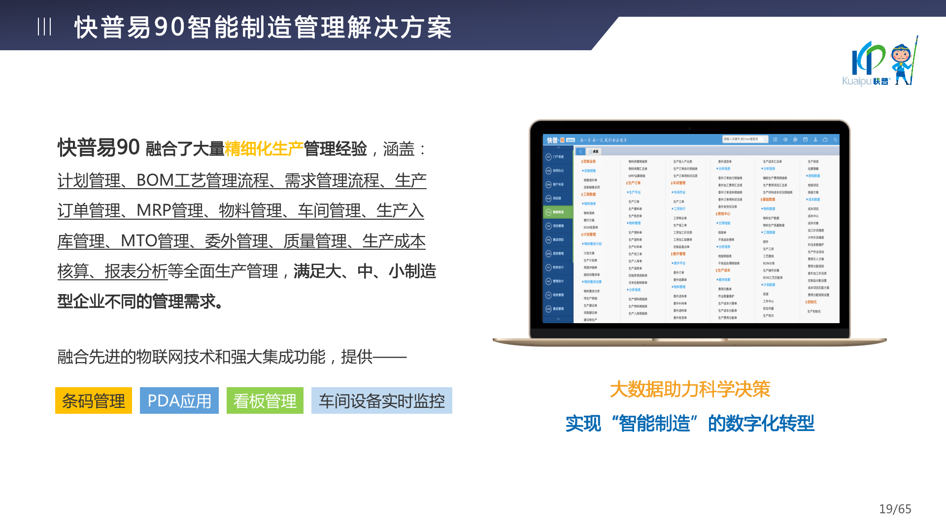 快普易90融合了大量精益生產(chǎn)管理的經(jīng)驗,涵蓋計劃管理、BOM管理、MRP運算、生產(chǎn)訂單管理、供應(yīng)鏈管理、車間管理、出入庫管理、委外管理、質(zhì)量管理、生產(chǎn)成本核算、報表分析等全面生產(chǎn)管理,為企業(yè)打造實時感知變化、分析變化、提供決策的數(shù)字化管理平臺,推動企業(yè)創(chuàng)新的管理,實現(xiàn)“智能制造”的數(shù)字化轉(zhuǎn)型。