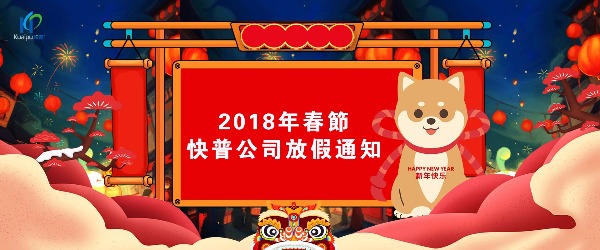 2018年春節(jié)來(lái)臨之際,依據(jù)《國(guó)務(wù)院辦公廳關(guān)于2018年部分節(jié)假日安排的通知》以及公司福利制度,現(xiàn)將快普公司2018年春節(jié)放假時(shí)間公布,我們將合理安排相關(guān)的準(zhǔn)備工作、值班事宜,請(qǐng)廣大客戶(hù)及合作伙伴知悉!