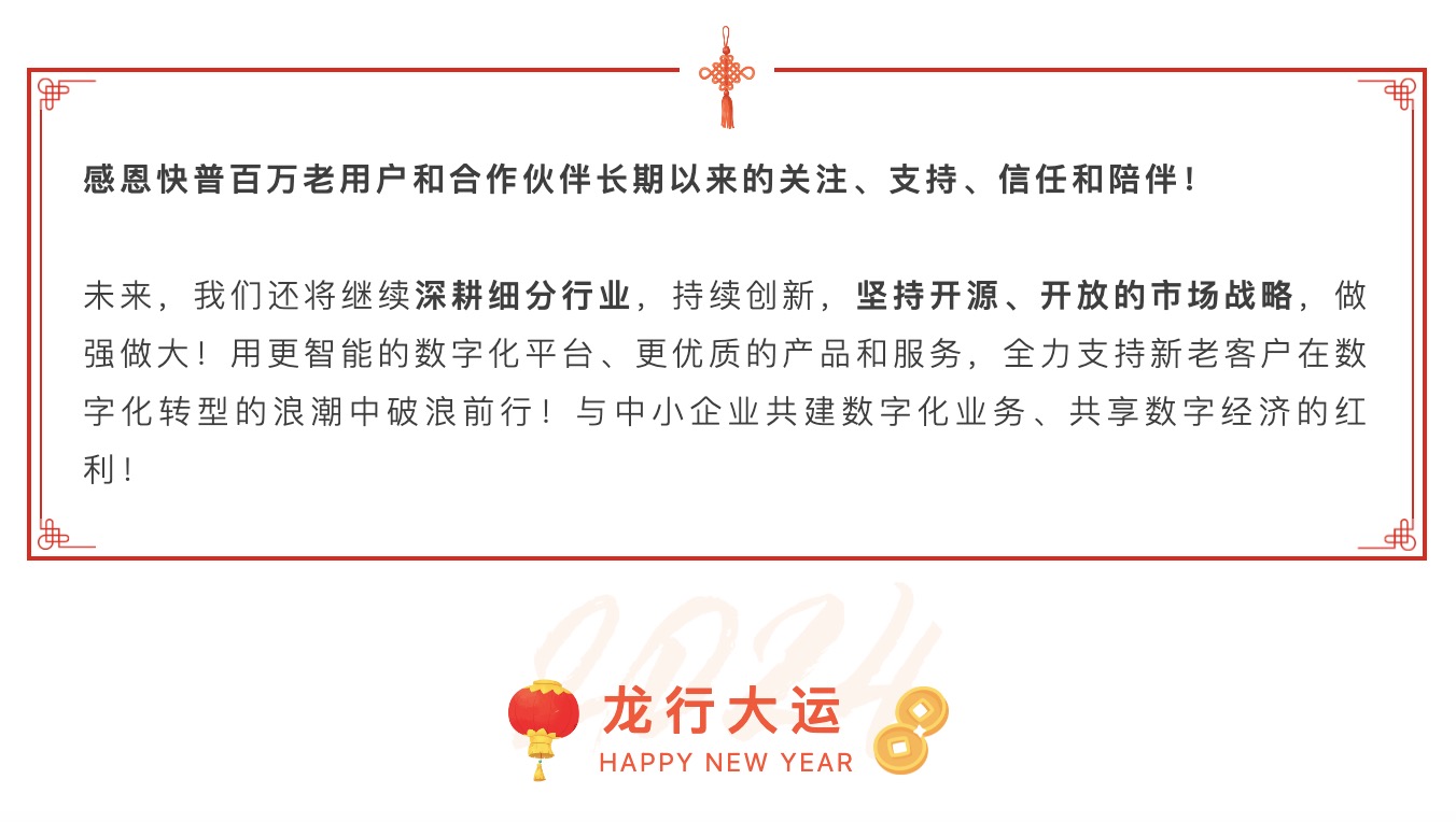 2023年是快普銳意改革、開拓進取的一年。面對機遇和挑戰(zhàn),我們苦練內(nèi)功,加大研發(fā)投入,積極擁抱市場,通過新一代“易”系列產(chǎn)品,幫助大量企業(yè)成功實現(xiàn)數(shù)字化的轉(zhuǎn)型升級,賦能企業(yè)邁向高質(zhì)量發(fā)展!同時,快普也實現(xiàn)了自身的逆勢增長,多項科技創(chuàng)新成果獲得了政府的嘉獎與社會各界的好評!2024年,我們不忘初心,堅守“數(shù)字化平臺服務(wù)商”的使命,1月份再創(chuàng)多項佳績!