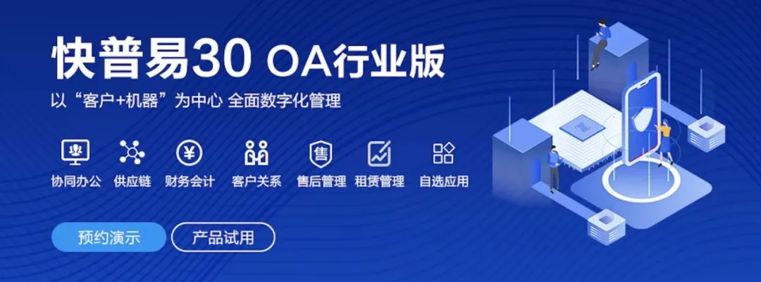 融合了全國大量OA企業(yè)成功的管理經(jīng)驗(yàn)和成熟的業(yè)務(wù)模型,以“客戶+機(jī)器”為中心提供數(shù)字化轉(zhuǎn)型解決方案,全面解決銷售、服務(wù)、租賃等多種業(yè)務(wù)模式的管理需求,以及企業(yè)經(jīng)營核算分析。